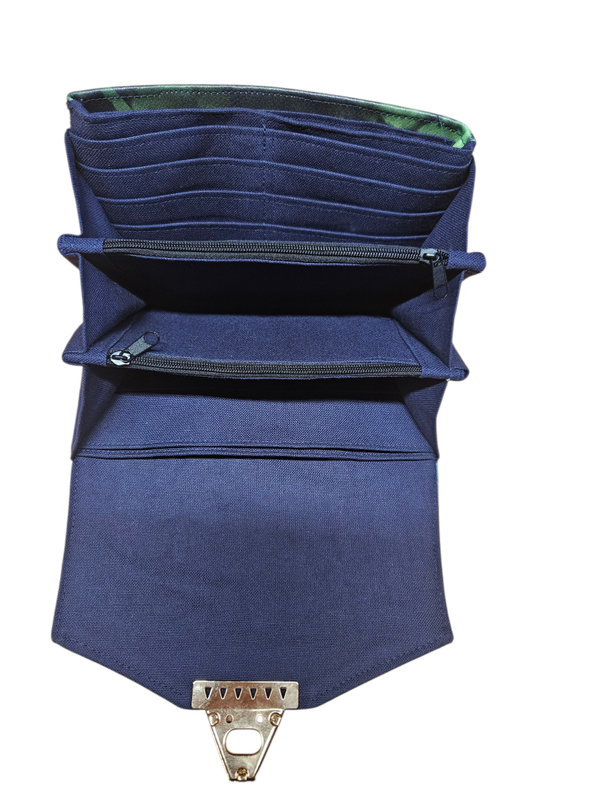 Das Portemonnaie L besitzt 8 EC Kartenfächer auf der einen Seite. In der Mitte 2 Münzfächer und auf der Klappenseite 2 Geldscheinfächer.